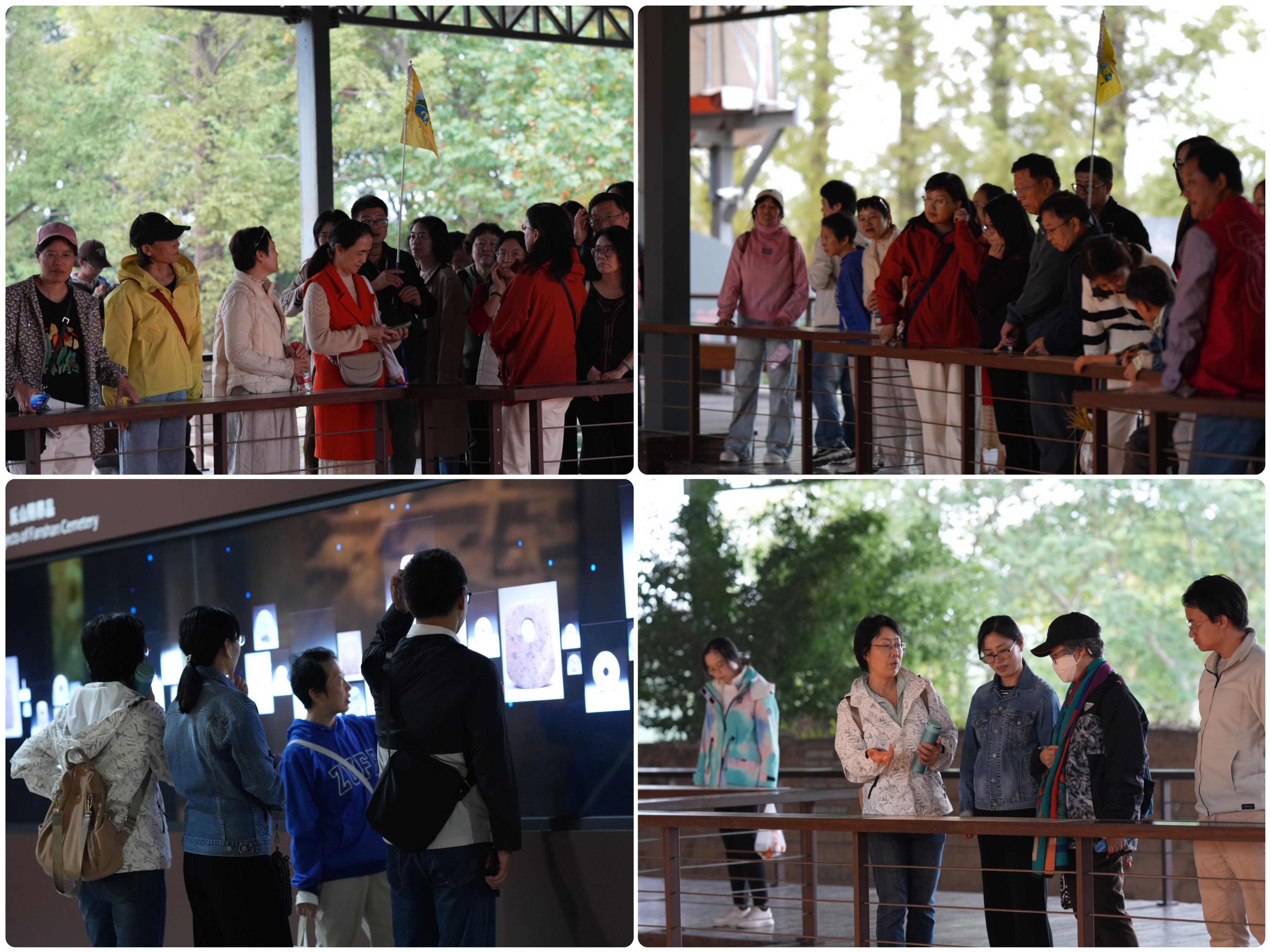 随后,众人走进被誉为“中华文明曙光”的良渚古城遗址公园。在专业讲解的引导下,一场跨越五千年的文明探索之旅徐徐展开。行走于莫角山宫殿区,登临高台,远古的庄严气象仿佛重现眼前;登上雉山观景台远眺,古城轮廓与斑斓秋色交织,历史的风韵扑面而来,令人心潮涌动。