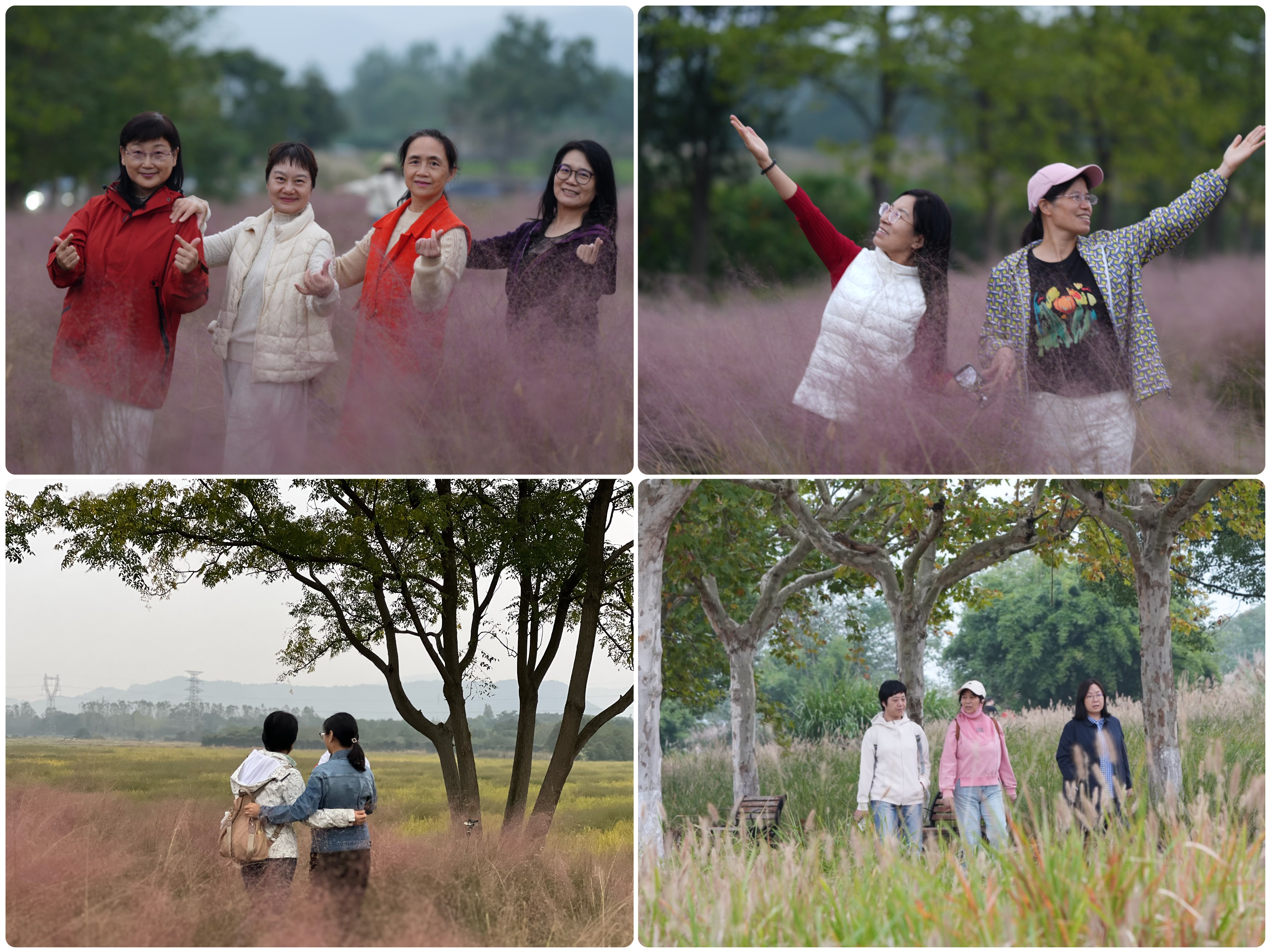 行程尾声定格于“美人台”。时值粉黛乱子草盛放,连绵似霞,轻盈如雾,与沧桑遗址、静默河湾相映成趣,构成一幅刚柔并济、古今交融的隽永画面。老师们纷纷在此驻足留影,用镜头捕捉光影交织间的诗意瞬间,留存一份属于这个秋天的温暖记忆。