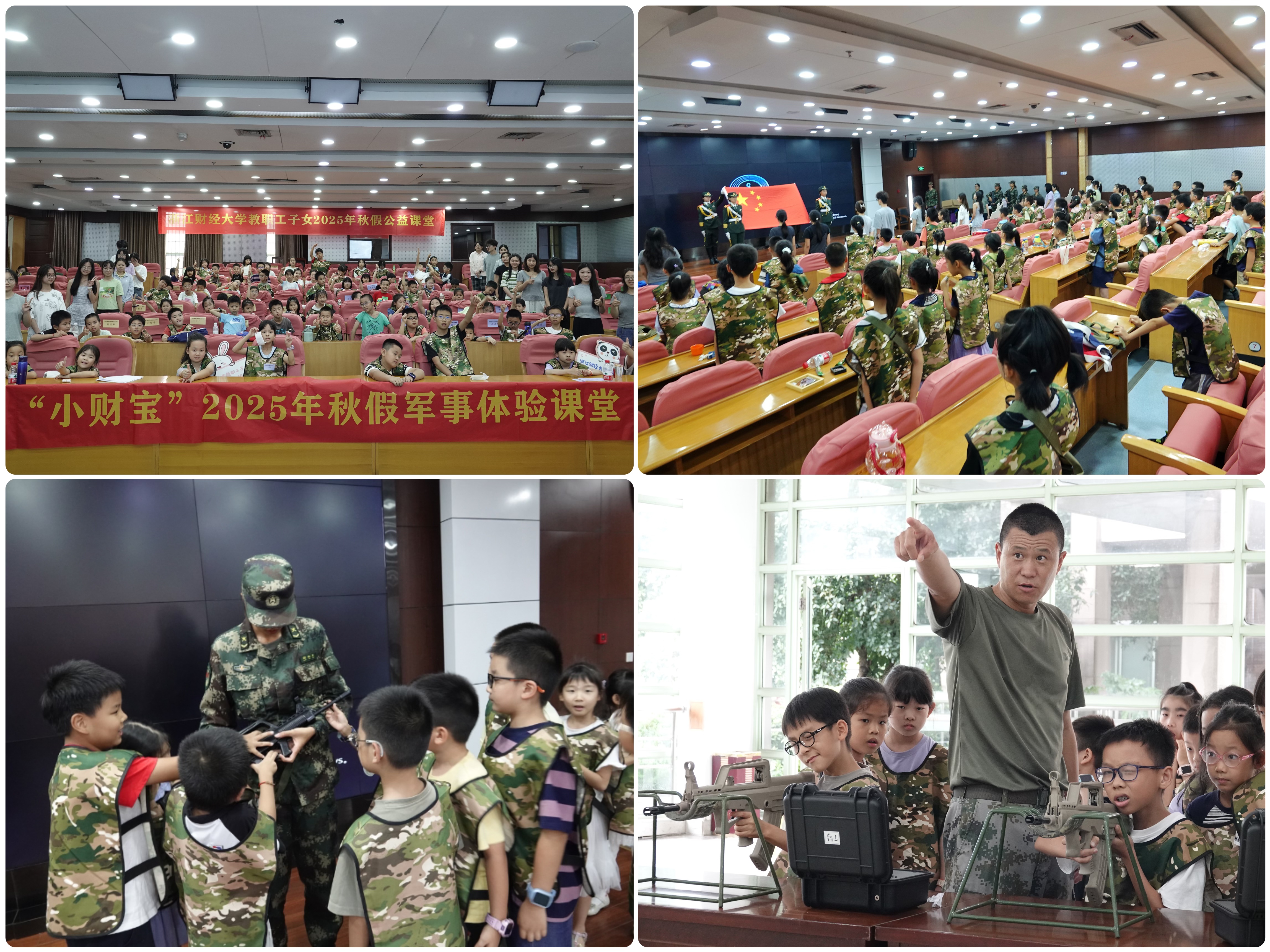 为持续深化我校“家”文化建设,切实关爱教职工及其子女,积极推动大中小思政教育一体化实践探索,9月28日至29日,学校2025年秋“益童成长”公益课堂顺利举行。本次公益课堂精心设计“军事体验课堂”“我和我的祖国绘画”等六大课程模块,每场活动均吸引百余位教职工子女参与,“小财宝”们在丰富多彩的课程中快乐学习,也在浓厚的爱国氛围中喜迎国庆。