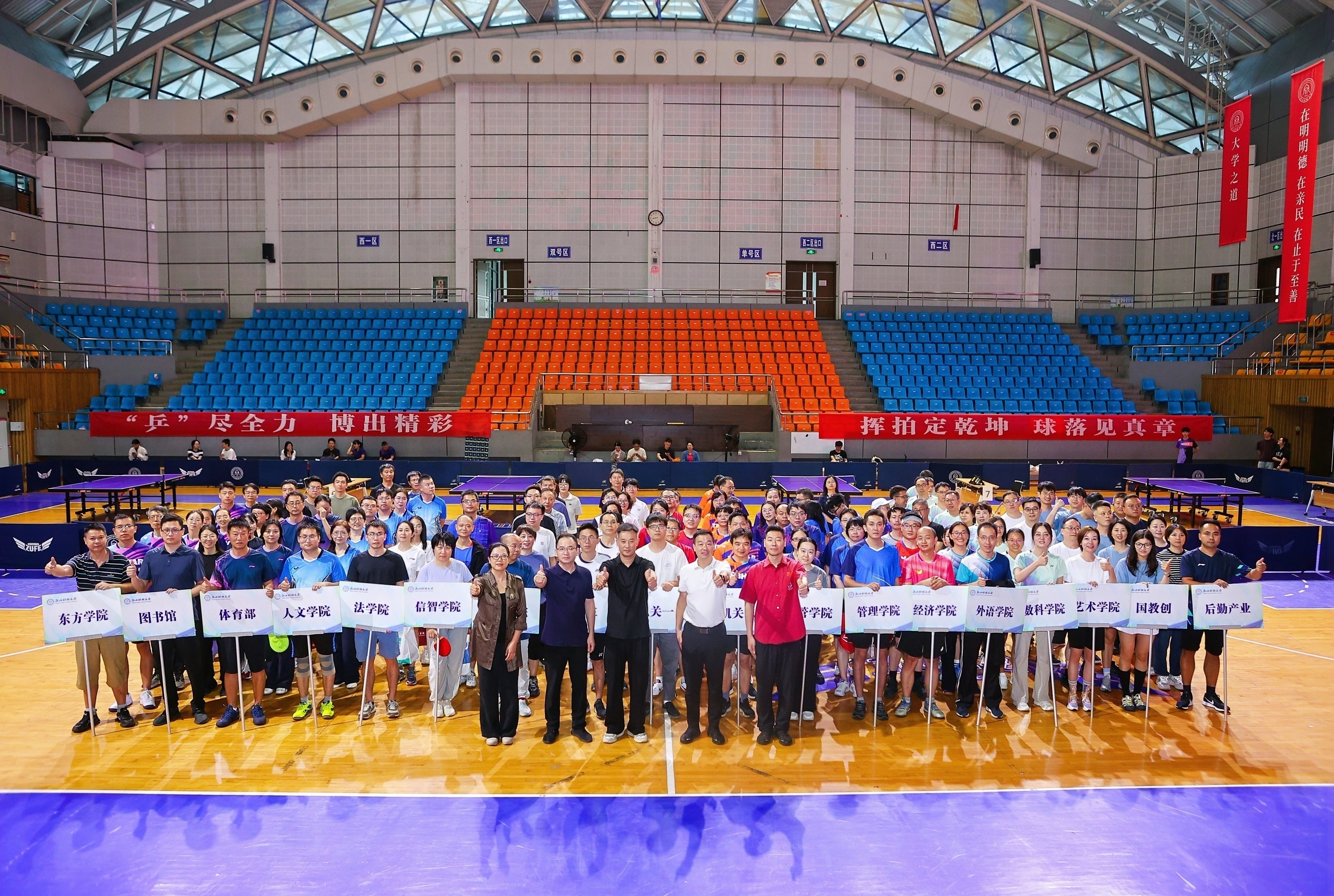10月14日-16日,学校“百年工运 活力浙财”2025年教职工乒乓球混合团体赛在校西体育馆成功举办,校党委副书记、校工会主席程爽出席开幕式并致辞。本次乒乓球混合团体赛由校工会、体育部联合主办,全校共18支队伍、150余名教职工参赛。