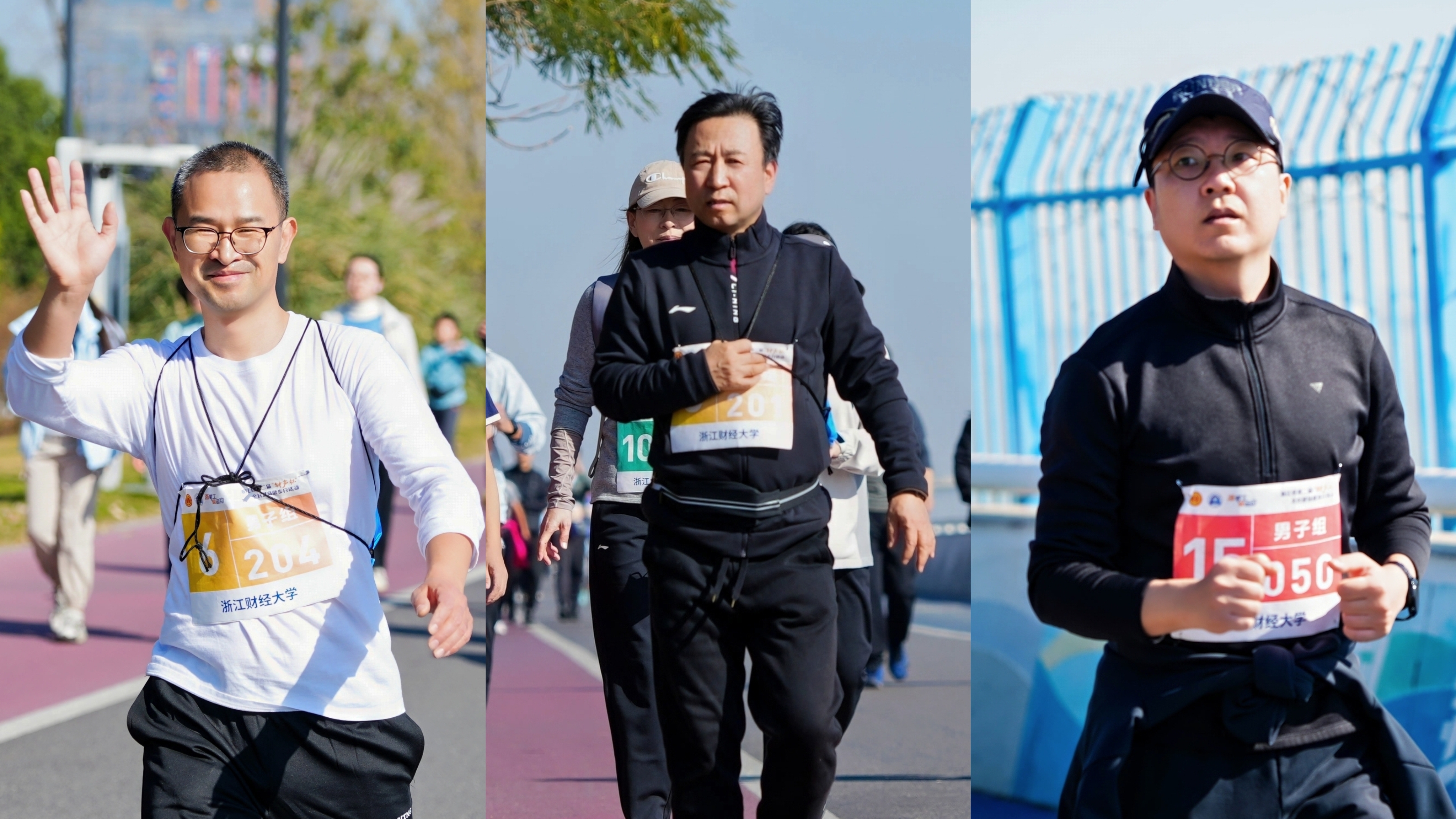 我校参赛教职工身着统一队服,在“浙江财经大学”旗帜的引领下,与各高校同仁并肩而立,形成一道亮丽的风景线。发令枪响,千帆竞发。老师们沿着精心设计的路线,或三五成群并步齐驱,或步伐坚定专注前行,在6公里、10公里、15公里不同赛程中,每个人都找到了适合自己的节奏。