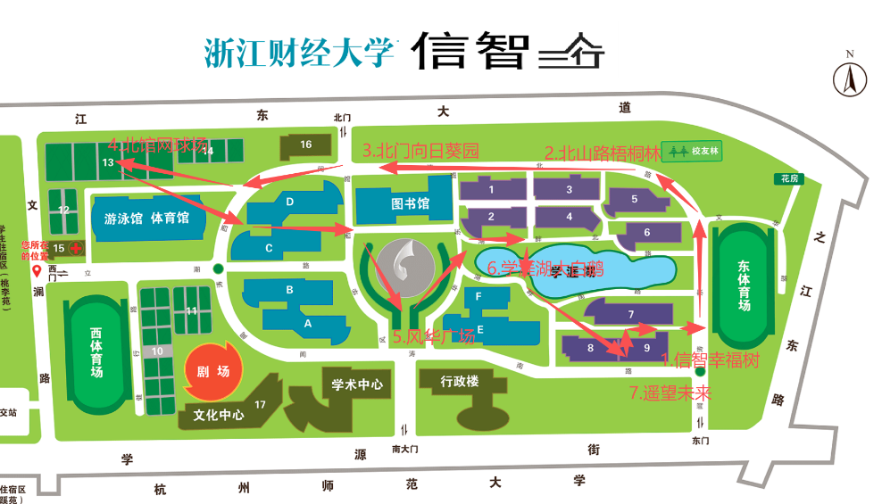 从孕育智慧的学院楼后“网红树”下出发,感受四季流转的生命力;漫步至校园北路梧桐林,在落叶纷飞中体会岁月的沉淀与坚守;行至北门向日葵园,正如教师们始终心向阳光、立德树人的初心;途经北馆网球场,展现教师们课堂之外的活力与风采;抵达图书馆前风华广场,回望教书育人、作育英才的使命与荣光;踱步学涯湖畔,与悠然的大白鹅一同享受片刻的宁静与闲适;最终登临学院四楼“遥望台”,极目远眺,共同畅想学院与学校未来发展的宏伟蓝图。